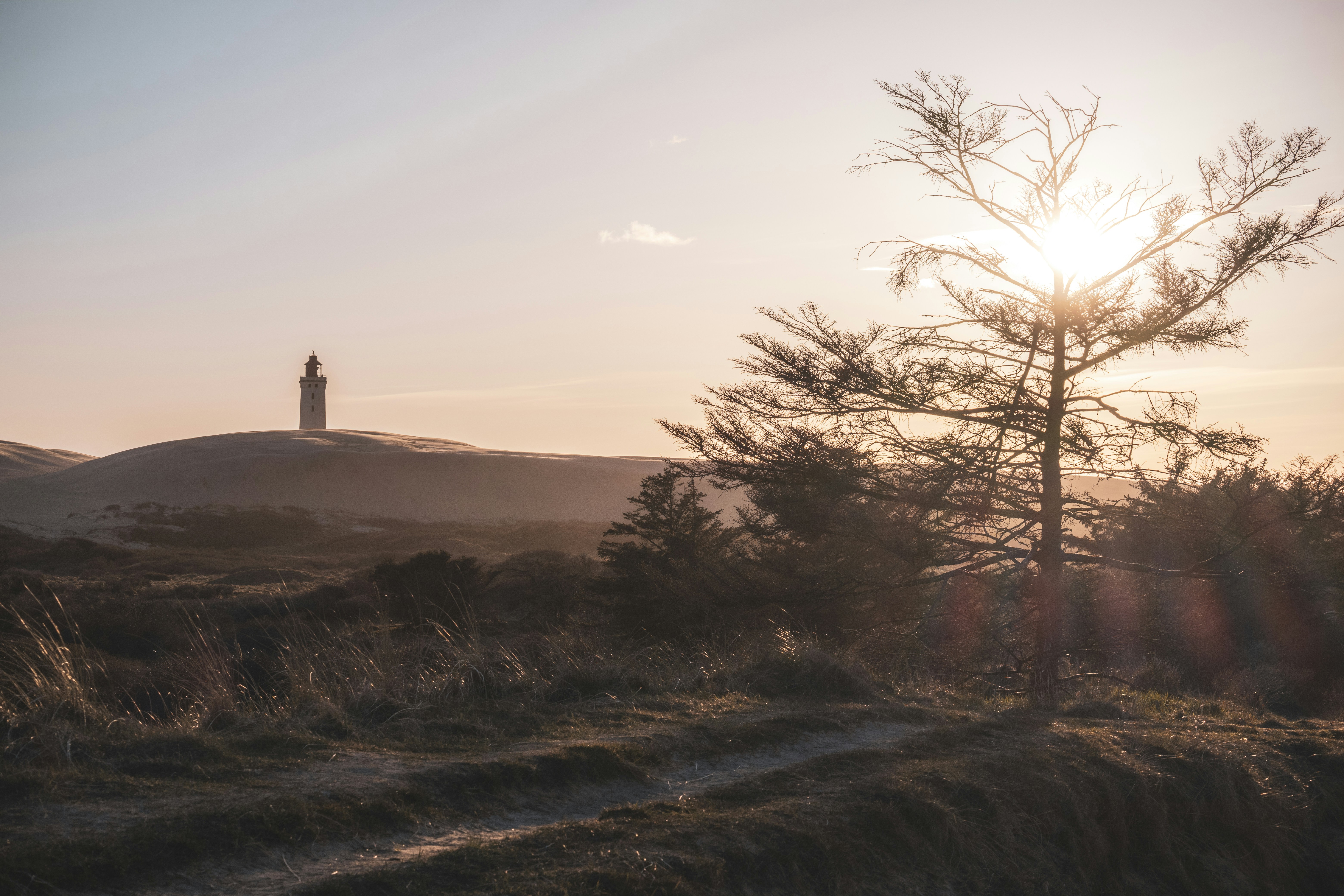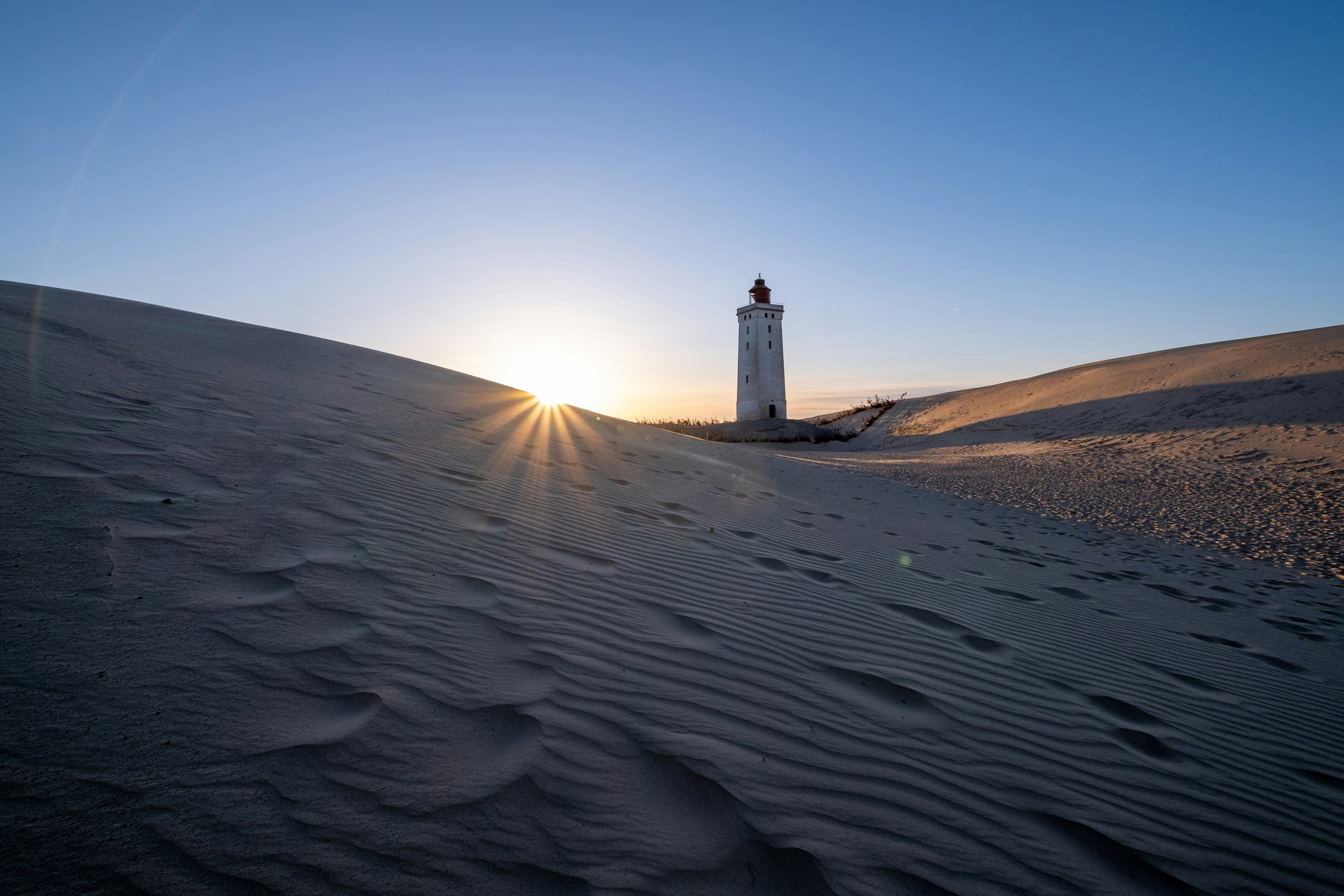 덴마크 해안의 루비어 크누데 등대는
