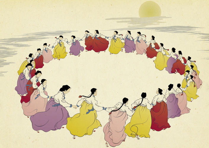 여성들이 손을 잡고 원을 그리며